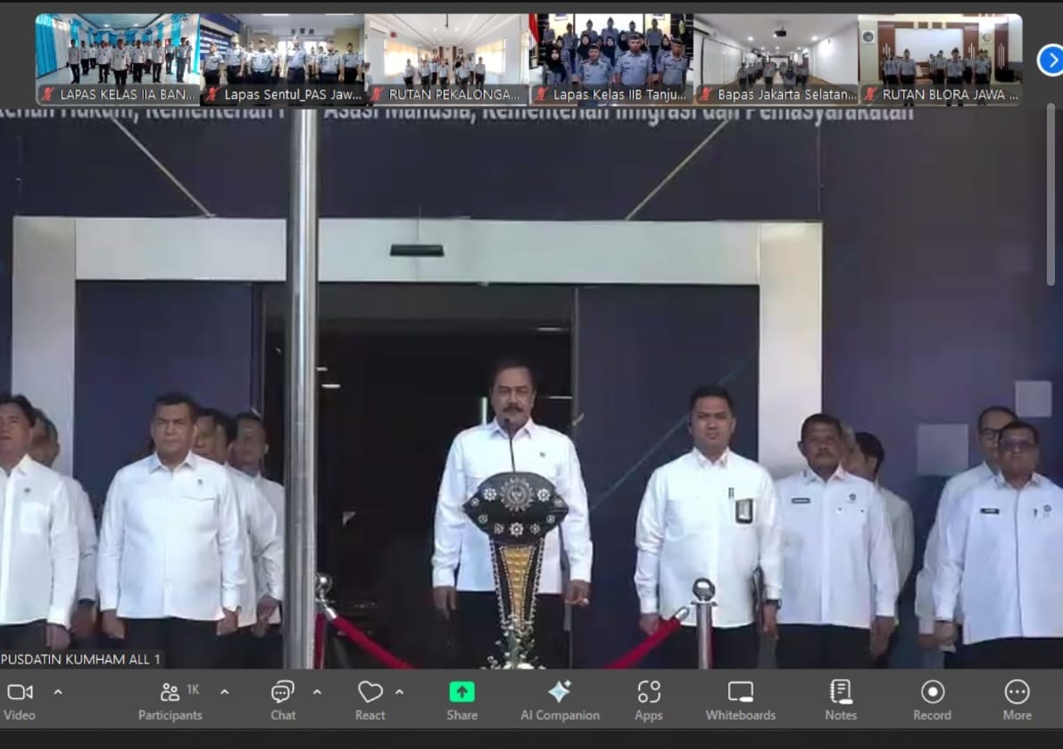 Dalam suasana penuh kebersamaan, jajaran pegawai dari Kementerian Koordinator Bidang Hukum, Hak Asasi Manusia, Imigrasi dan Pemasyarakatan, bersama Kementerian Hukum, Kementerian HAM, dan Kementerian Imigrasi dan Pemasyarakatan mengikuti apel bersama yang dilaksanakan serentak, Senin (16/06). Bertindak selaku Pembina Apel adalah Menteri Imigrasi dan Pemasyarakatan, Agus Andrianto.
