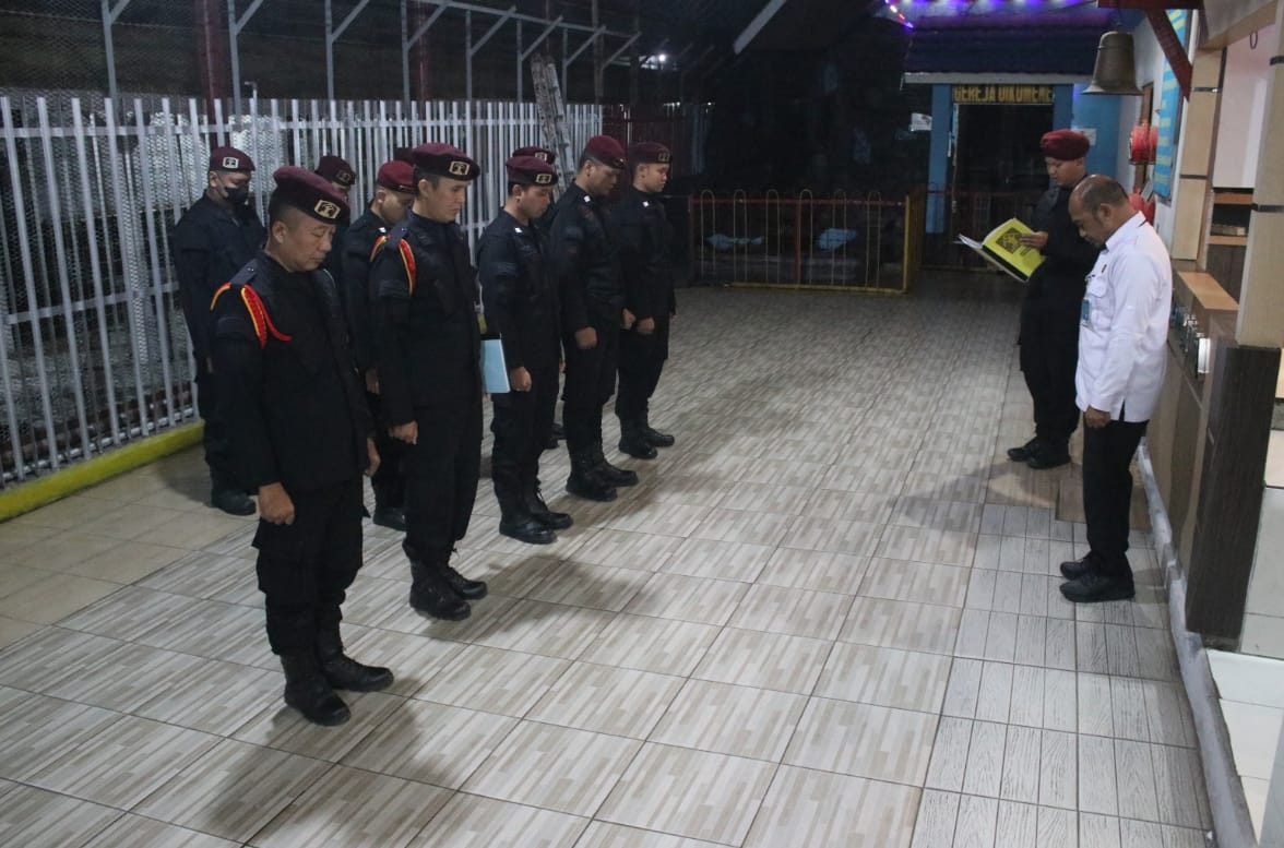 Ka. KPLP Lapas Banjarmasin, Deri Prihandoko, menegaskan pentingnya kedisiplinan dan kewaspadaan selama bertugas, terutama di malam hari.