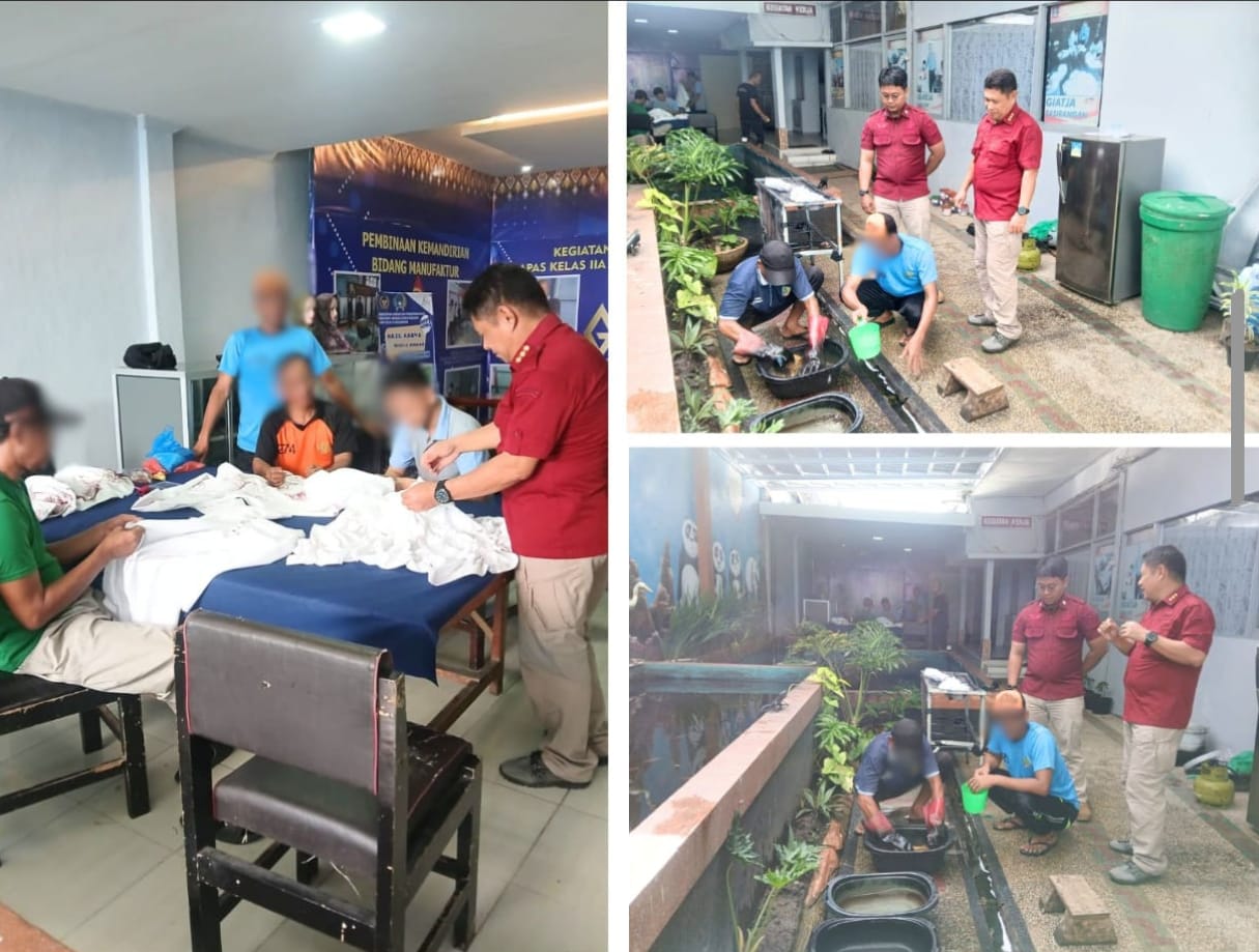 Kepala Lembaga Pemasyarakatan (Kalapas) Kelas IIA Banjarmasin, Akhmad Herriansyah, meninjau langsung kegiatan pembinaan kemandirian warga binaan di bidang keterampilan membatik kain sasirangan, Kamis (17/07).