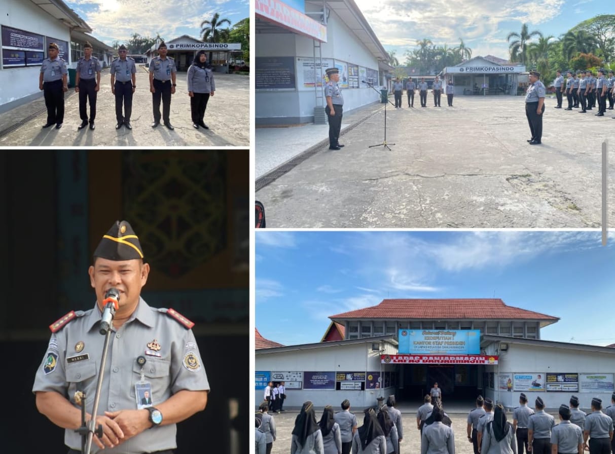 Mengawali pekan dengan semangat, seluruh pegawai Lapas Kelas IIA Banjarmasin mengikuti apel pagi yang dilaksanakan di halaman dalam Lapas pada Senin (28/07). Kalapas Banjarmasin, Akhmad Herriansyah, bertindak langsung sebagai pembina apel.