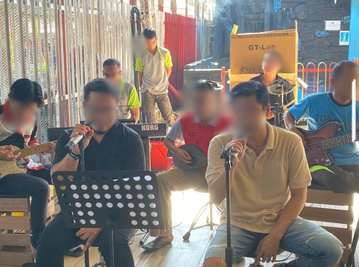 Penampilan musik dalam layanan kunjungan dinilai dapat menciptakan suasana yang lebih humanis, menjembatani interaksi hangat antara warga binaan dan keluarganya, serta memperkuat dukungan moral yang mereka butuhkan dalam menjalani masa pidana. (Humas Lapas Banjarmasin)