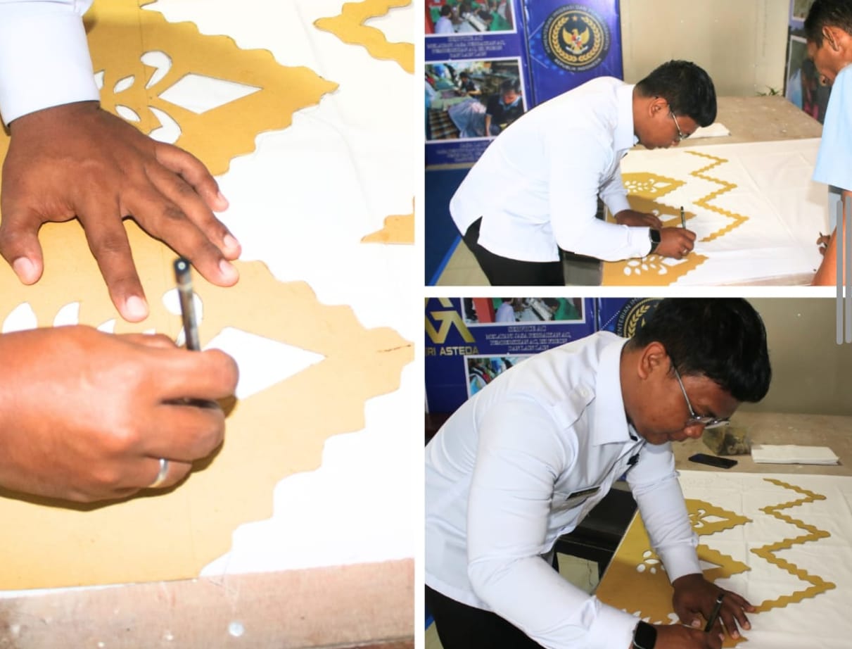 Upaya pembinaan kemandirian terus dilakukan oleh Lembaga Pemasyarakatan (Lapas) Kelas IIA Banjarmasin melalui pelatihan pembuatan kain sasirangan. Pada Senin (14/07), petugas dari Subseksi Bimbingan Kerja mencontohkan secara langsung proses pembuatan pola kepada warga binaan.
