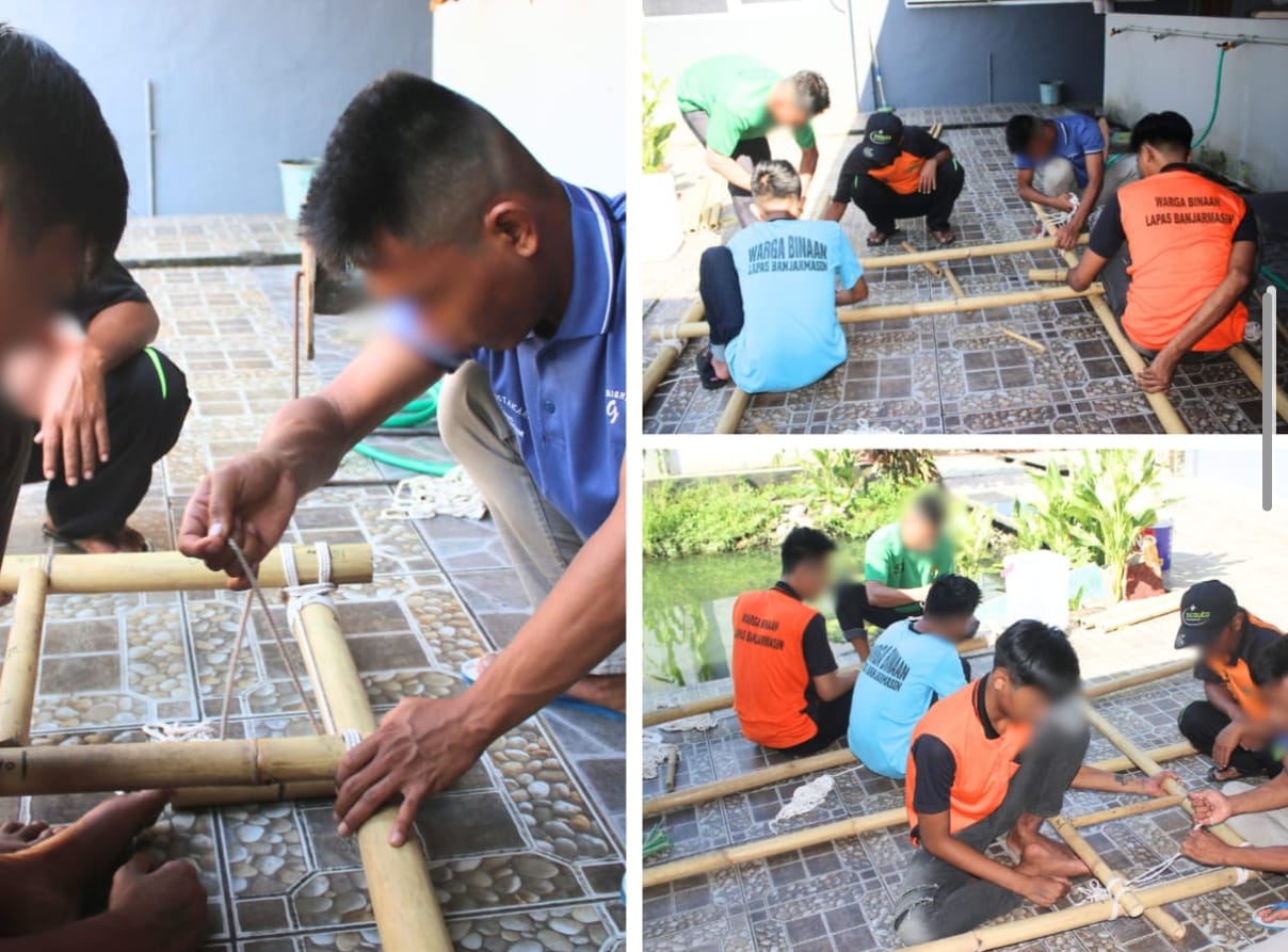 Mereka tampak serius dan penuh semangat dalam mengerjakan struktur gapura yang nantinya akan menjadi identitas dan representasi kontingen Lapas Banjarmasin dalam perkemahan yang akan digelar di LPKA Martapura pada tanggal 25–27 Juli 2025 nanti.