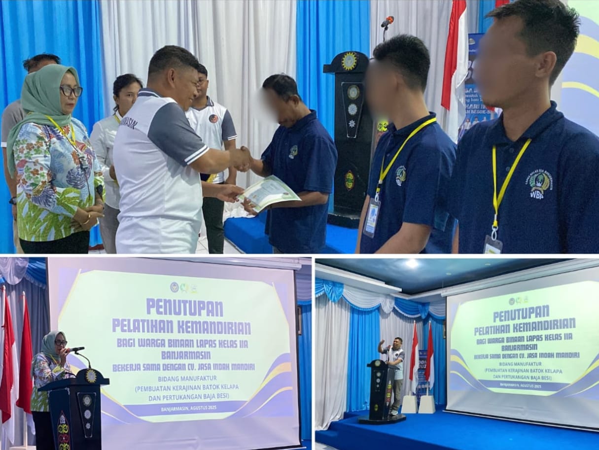 Kepala Lembaga Pemasyarakatan (Kalapas) Kelas IIA Banjarmasin, Akhmad Herriansyah, resmi menutup kegiatan Pelatihan Kemandirian bagi Warga Binaan Pemasyarakatan (WBP) yang berlangsung di Aula Lapas, Jumat (29/08).