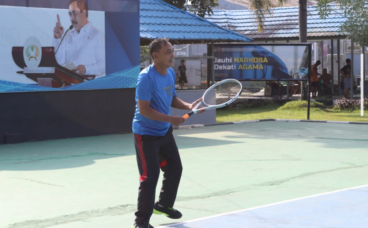 Suasana pagi di Lapas Narkotika Kelas IIA Karang Intan, Kamis (8/8), terlihat penuh semangat. Petugas bersama peserta warga binaan mengikuti kegiatan olahraga bersama dengan bermain tenis lapangan di area olahraga Lapas. Kegiatan ini menjadi salah satu sarana menjaga kebugaran fisik sekaligus mempererat hubungan di antara mereka.