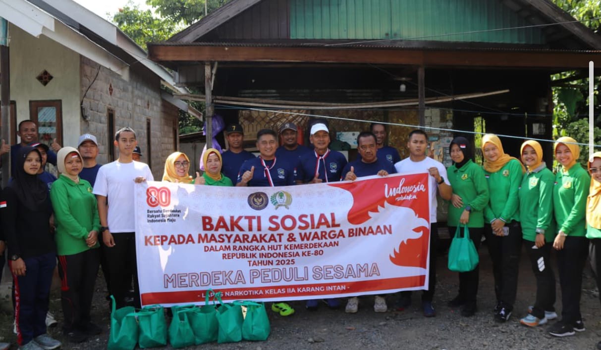 Dalam rangka memperingati Hari Ulang Tahun (HUT) ke-80 Kemerdekaan Republik Indonesia, Lapas Narkotika Kelas IIA Karang Intan melaksanakan kegiatan bakti sosial berupa pembagian 60 paket sembako kepada warga sekitar lingkungan Lapas, Sabtu (16/8).