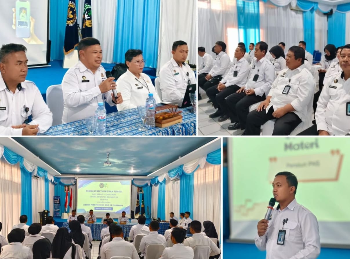 Penguatan materi disampaikan oleh Ketua Tim SDM Kanwil Ditjenpas Kalsel, Choirul Hermawan, bersama tim (Sukma, Bastomi, dan Amanda), dengan peserta seluruh pegawai Lapas Banjarmasin.