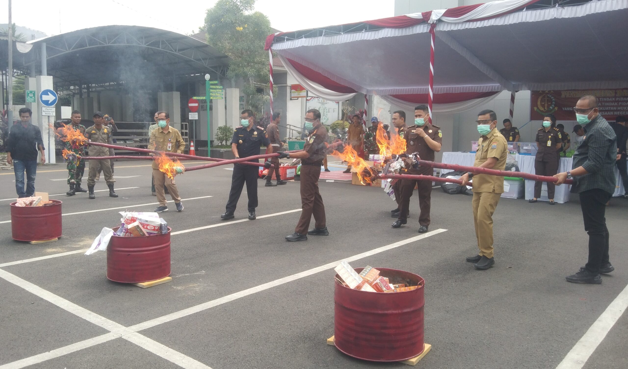 Dalam kegiatan pemusnahan barang bukti tersebut menghadirkan unsur Forkopimda, Pemkot Palembang, Polrestabes Palembang, serta Bea Cukai.