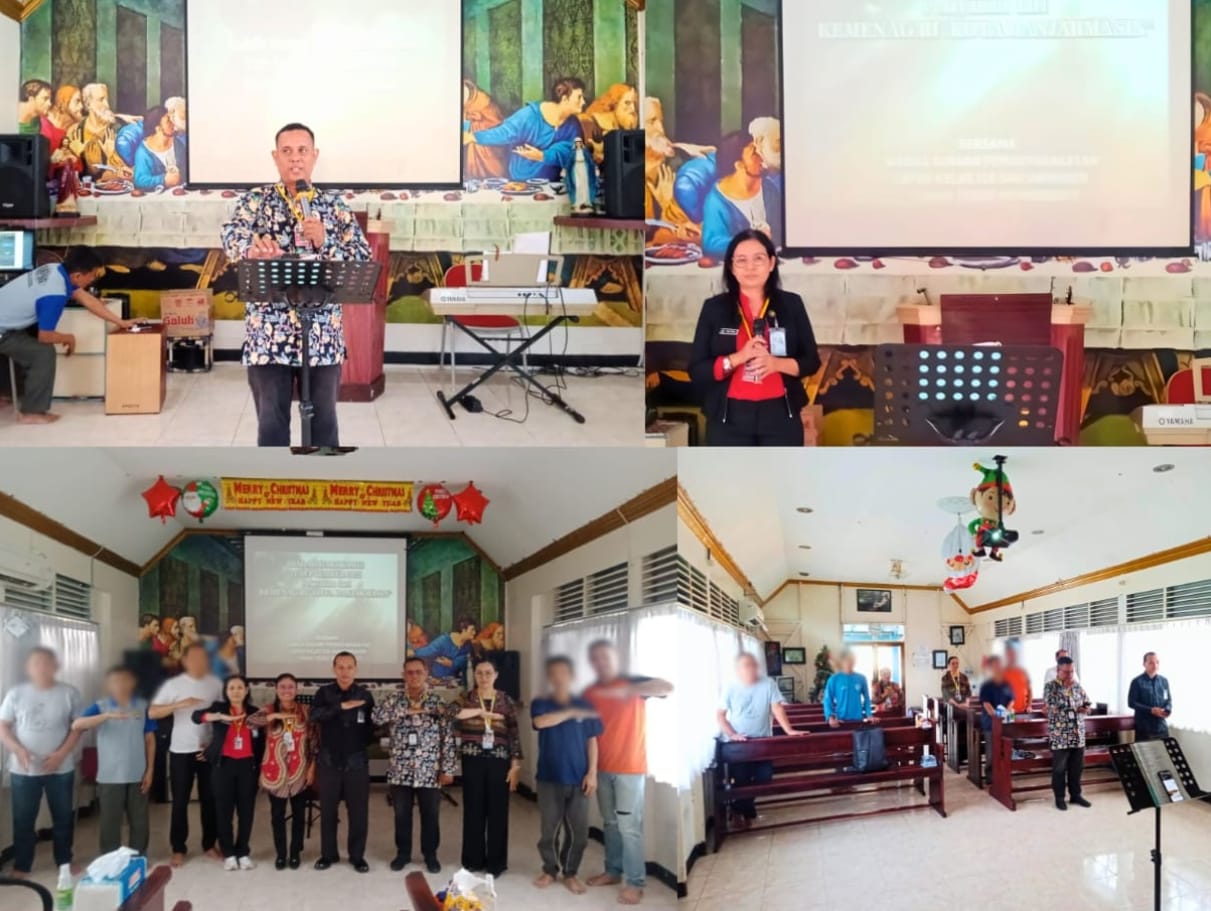 Warga Binaan Pemasyarakatan (WBP) beragama Kristiani di Lapas Kelas IIA Banjarmasin mengikuti ibadah rutin bulanan yang digelar pada Kamis (11/09) di Gereja Oikumene Lapas. Ibadah ini dilaksanakan dengan pelayanan langsung dari Kementerian Agama Republik Indonesia (Kota Banjarmasin) serta dihadiri oleh Pembina Gereja Oikumene Lapas.