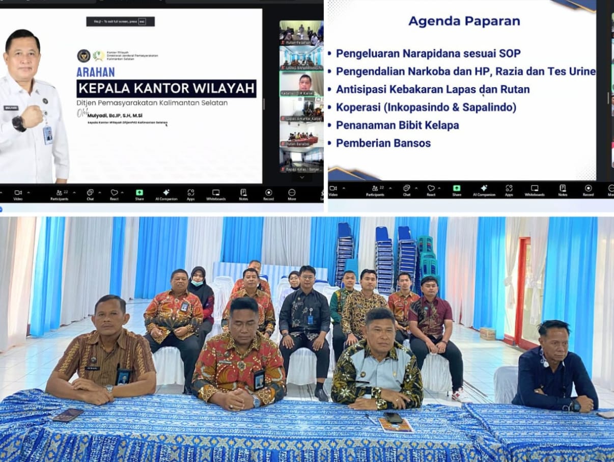 Kalapas Kelas IIA Banjarmasin, Akhmad Herriansyah, bersama jajaran struktural mengikuti arahan dari Kepala Kantor Wilayah Ditjen Pemasyarakatan Kalimantan Selatan, Mulyadi, secara virtual pada Kamis (04/09).