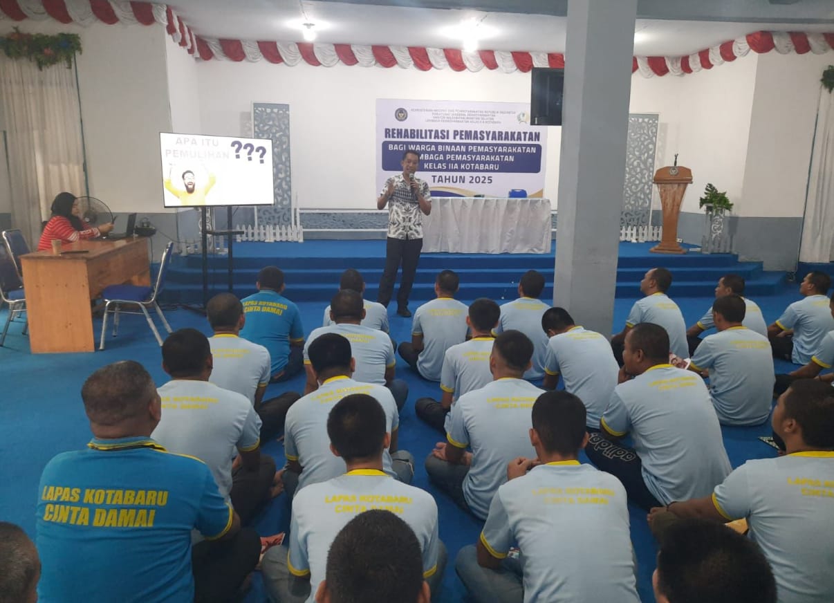 Tim konselor adiksi Lapas Narkotika Kelas IIA Karang Intan dipercaya menjadi narasumber dalam kegiatan Rehabilitasi Pemasyarakatan bagi Warga Binaan di Lapas Kelas IIA Kotabaru, Jum’at (12/9). Kegiatan yang berlangsung di Aula Lapas Kotabaru ini dimulai pukul 09.00 WITA dan diikuti sebanyak 100 orang warga binaan.