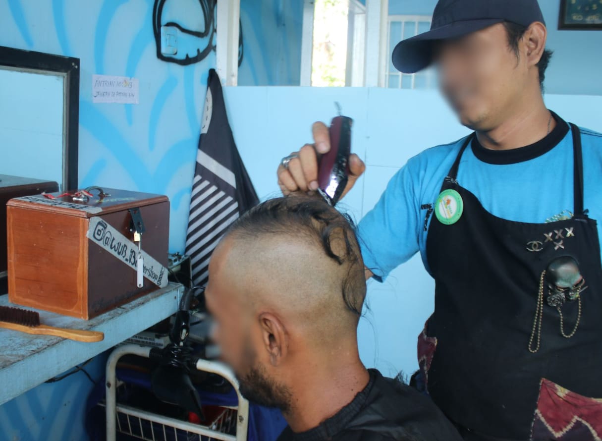 Salah satu WBP, M. Yudi Saputra, yang sudah 1 tahun 8 bulan aktif dalam kegiatan potong rambut, mengaku kegiatan ini sangat bermanfaat.