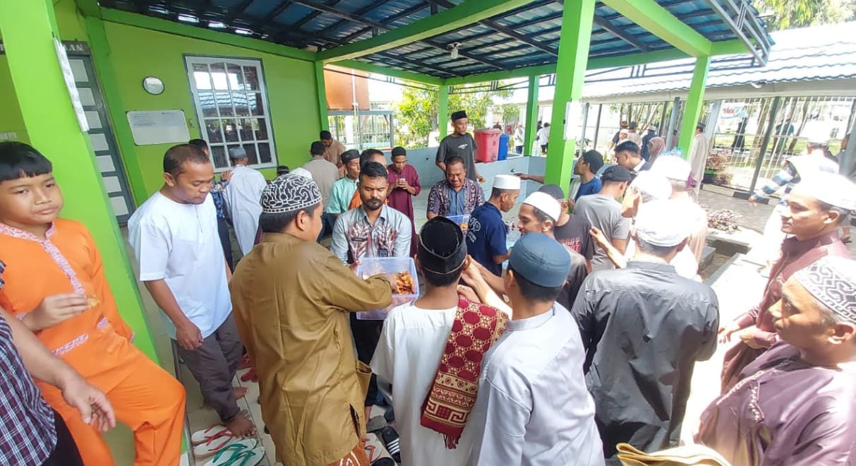 Suasana penuh kehangatan dan kebersamaan tampak di Masjid At-Taubah Lembaga Pemasyarakatan (Lapas) Narkotika Kelas IIA Karang Intan usai pelaksanaan salat Jumat (24/10). Kepala Lapas Narkotika Karang Intan, Yugo Indra Wicaksi, bersama jajaran petugas, berbagi pisang goreng dan kopi hangat kepada para Warga Binaan Pemasyarakatan (WBP) dalam kegiatan bertajuk Jumat Berbagi.