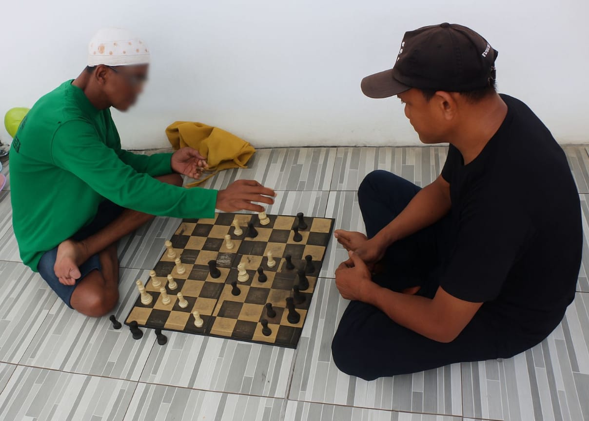 Langkah-langkah bidak hitam dan putih itu berjalan perlahan, diiringi canda ringan dan tawa kecil dari warga binaan lain yang ikut menonton. Di balik kesederhanaannya, permainan catur ini menjadi cara mereka mengusir rasa jenuh, mengasah logika, dan melatih kesabaran di tengah rutinitas kehidupan lapas.