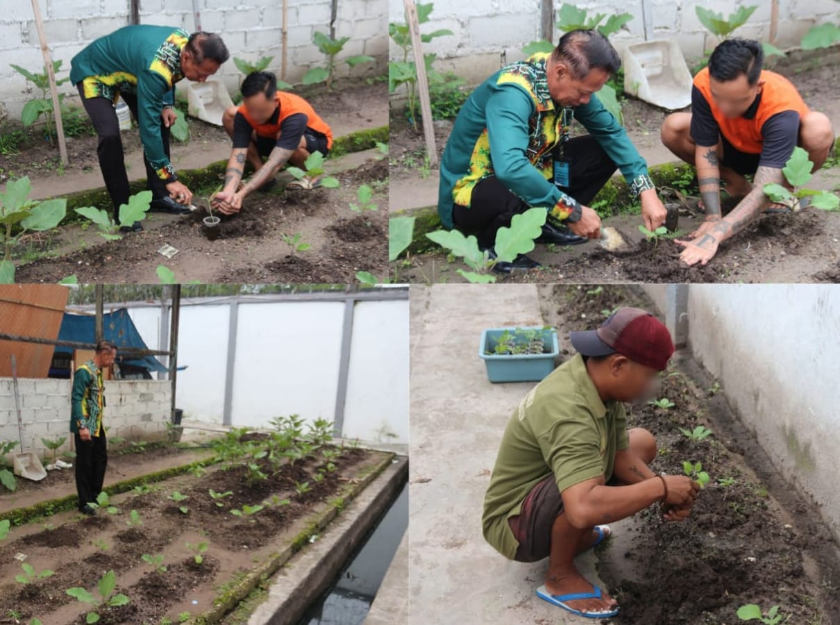 Kegiatan tersebut turut diawasi dan diarahkan langsung oleh Kasi Kegiatan Kerja (Giatja), Hazairin, yang memberikan bimbingan teknis kepada warga binaan mengenai cara menanam, merawat, dan memupuk bibit terong dengan benar agar hasilnya optimal.