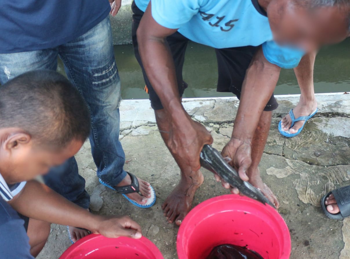 Warga Binaan Pemasyarakatan (WBP) Lapas Kelas IIA Banjarmasin melaksanakan kegiatan penyortiran ikan lele berusia sekitar dua bulan di area kolam pembesaran yang telah disiapkan pihak lapas, Rabu (08/10).