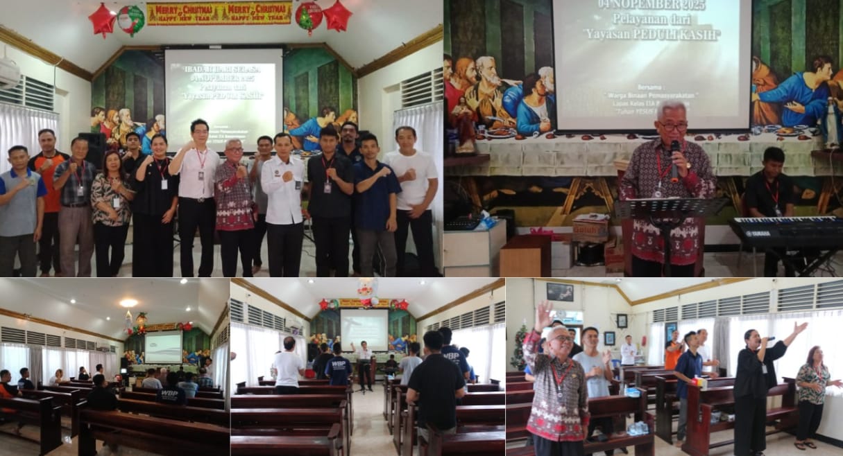 Suasana khidmat mewarnai Gereja Oikumene Lapas Kelas IIA Banjarmasin pada Selasa (4/11), saat dilaksanakan Ibadah Rutin Bulanan Pelayanan yang difasilitasi oleh Yayasan Peduli Kasih. Kegiatan ini dihadiri oleh seluruh WBP Kristiani dan pembina gereja di lapas.