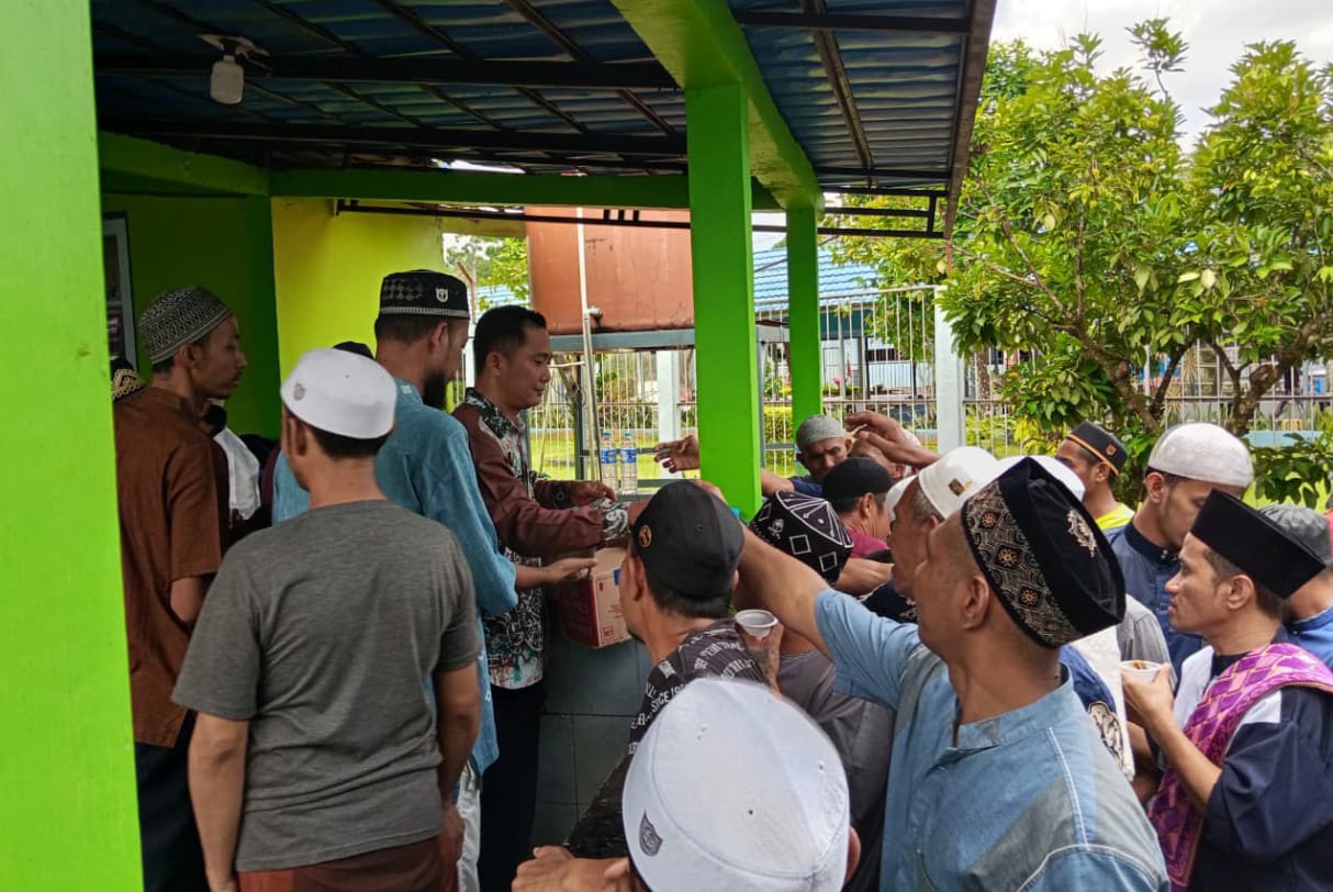 Pembagian kue dan minuman dilakukan oleh petugas seksi pembinaan bersama pengurus Masjid At-Taubah. Warga binaan tampak antusias dan menyambut kegiatan tersebut dengan penuh rasa syukur.