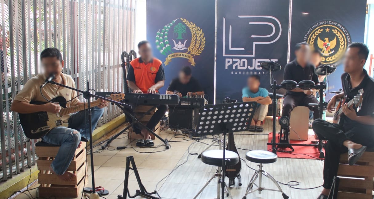 Hiburan oleh LP Project Band membuktikan bahwa kegiatan kreatif dan seni musik dapat menjadi sarana pembinaan sosial dan emosional, sekaligus mempererat hubungan antara warga binaan dan masyarakat yang berkunjung. (Humas Lapas Kelas IIA Banjarmasin)