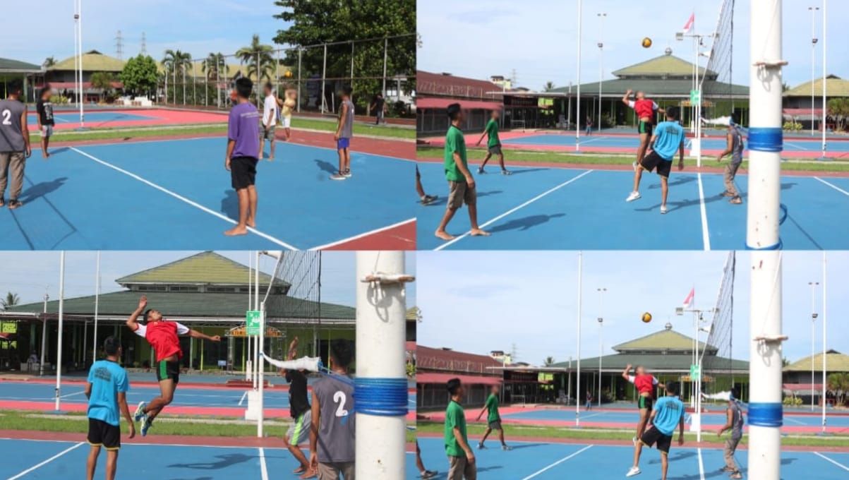 Kamis (6/11) sore, suasana lapangan olahraga Lapas Kelas IIA Banjarmasin tampak semarak. Sejumlah Warga Binaan Pemasyarakatan (WBP) bersemangat melakukan latihan voli rutin yang menjadi salah satu kegiatan pembinaan jasmani di lingkungan Lapas. Sorak semangat dan tawa ringan mewarnai jalannya latihan, menandakan semangat sportivitas yang tinggi.