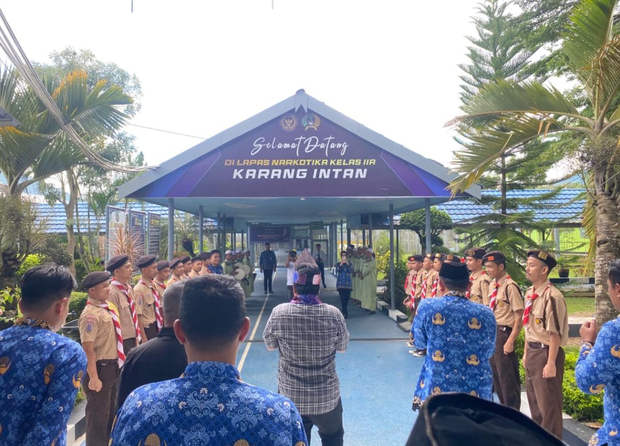 Kunjungan tersebut disambut langsung oleh Kepala Lapas Narkotika Karang Intan, Yugo Indra Wicaksi, bersama jajaran pejabat struktural. Suasana penyambutan berlangsung semarak dan penuh makna melalui penampilan yel-yel Pramuka Warga Binaan serta lantunan rebana, yang mencerminkan hasil pembinaan kedisiplinan, kebersamaan, dan penguatan nilai keagamaan di dalam lapas.