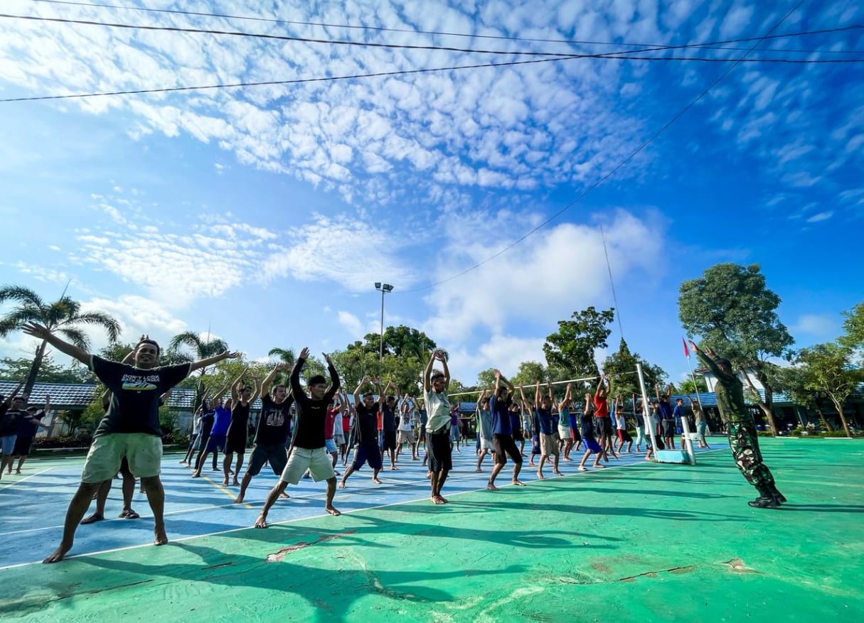 Beragam gerakan fisik dilakukan secara bersama-sama, mulai dari pemanasan, latihan kebugaran, hingga pendinginan, yang dipandu langsung oleh personel TNI AD dari Koramil 1006/05 Karang Intan sebagai instruktur.