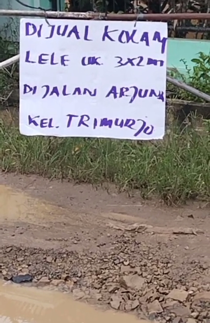 Dengan beredarnya unggahan vidio yang berdurasi satu menit tiga detik di beberapa platform jejaring media sosial Facebook dan tiktok terkait jalan rusak dijalan Arjuna kelurahan trimurjo Lampung Tengah dengan menggambarkan jalan berlubang dan portal jalan yang bertuliskan “Di Jual Kolam Lele ber ukuran 3x2m” adalah bentuk kekecewaan warga dan memberikan tamparan keras kepada pemerintah daerah kabupaten Lampung Tengah